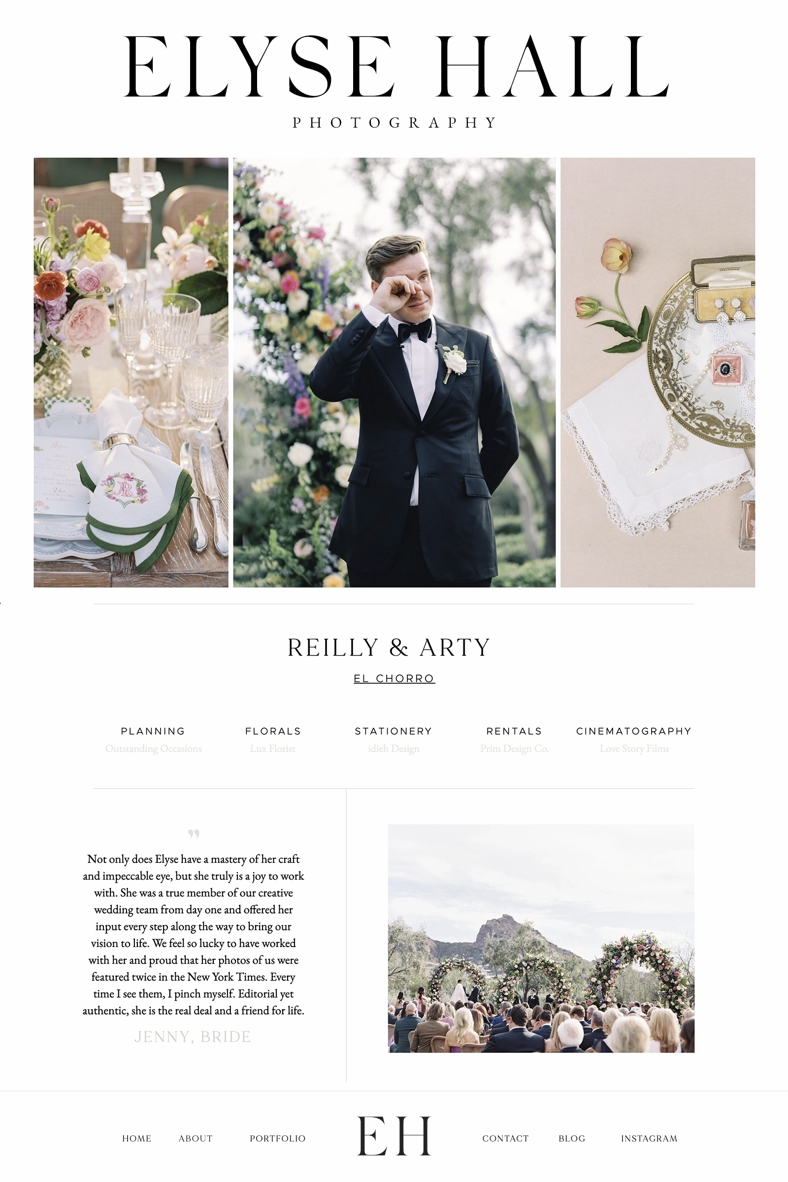 WEBSITE DETAILS: A refined, custom website designed for Elyse Hall Photography, blending soft, editorial design with a clean, intuitive layout that allows the imagery to take center stage. Elyse Hall is a luxury wedding photographer specializing in fine art wedding photography, destination weddings, and romantic engagements in Arizona, Utah and California. Celebrated for her timeless, romantic imagery, she crafts personalized experiences that capture both the grand moments and delicate details of your wedding day, ensuring each image reflects your unique love story.